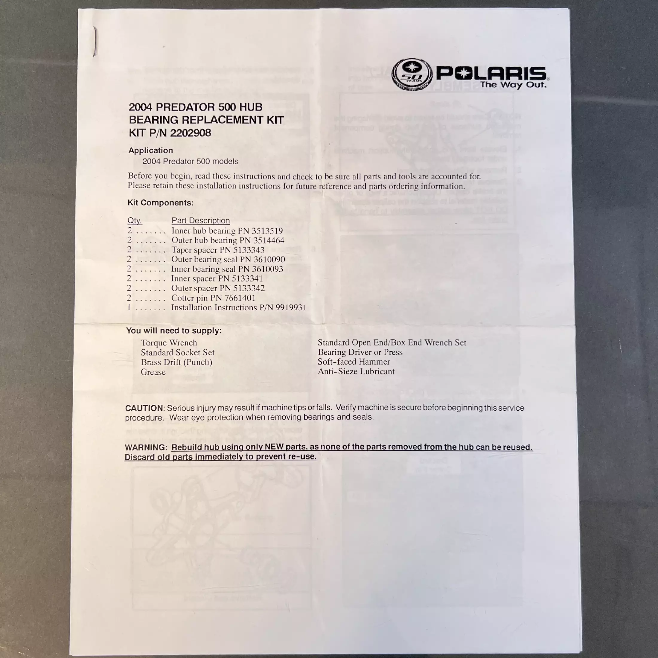 Polaris 2202908 – Kit-Hub Bearing Replacement*Anm